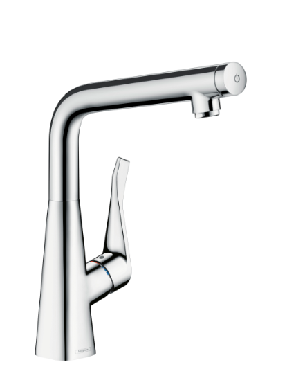 Un robinet de cuisine qui consomme moins d’eau ne s’avère pas si pratique pour remplir une casserole de pâtes ou pour faire la vaisselle. Nous devons modifier nos habitudes pour gaspiller moins d’eau dans la cuisine. Nous y gaspillons en effet beaucoup d’eau, car nos mains ne sont pas toujours libres pour couper le robinet. Par exemple, en faisant la vaisselle ou en rinçant des légumes, nous laissons souvent l’eau couler. Pour résoudre ce problème, Hansgrohe a conçu une gamme pratique de robinets de cuisine dotée de la technologie Select. Outre leur poignée traditionnelle, ces robinets présentent un bouton marche/arrêt supplémentaire à l’avant du bec. Ainsi, vous pouvez facilement et rapidement ouvrir ou fermer le robinet.