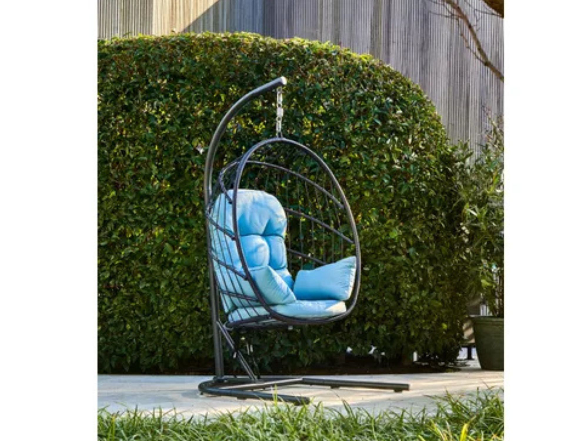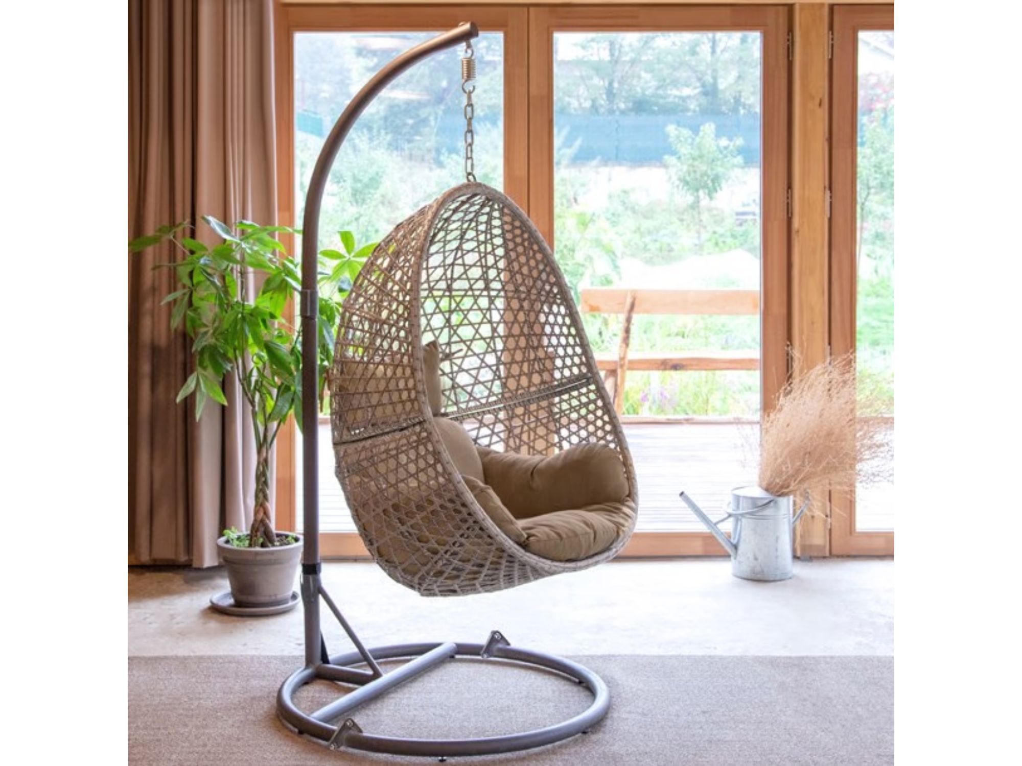 L’autre séduira les moins bricoleurs d’entre vous ou ceux qui ne peuvent s’empêcher de modifier fréquemment l’emplacement des meubles à la maison, à savoir le fauteuil suspendu équipé d’un support à poser au sol. Si cette seconde version prend davantage de place, elle présente néanmoins l’avantage de pouvoir être déplacée à l’extérieur pour une sieste au soleil dès que pointent les beaux jours. Alors, on succombe ? Détente assurée !